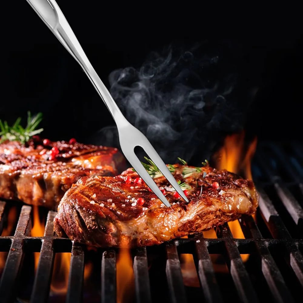 ✓Design - The meat fork is equipped with 2 stainless steel sharp teeth, specifically designed to securely hold your roast or turkey in place while you slice the meat.