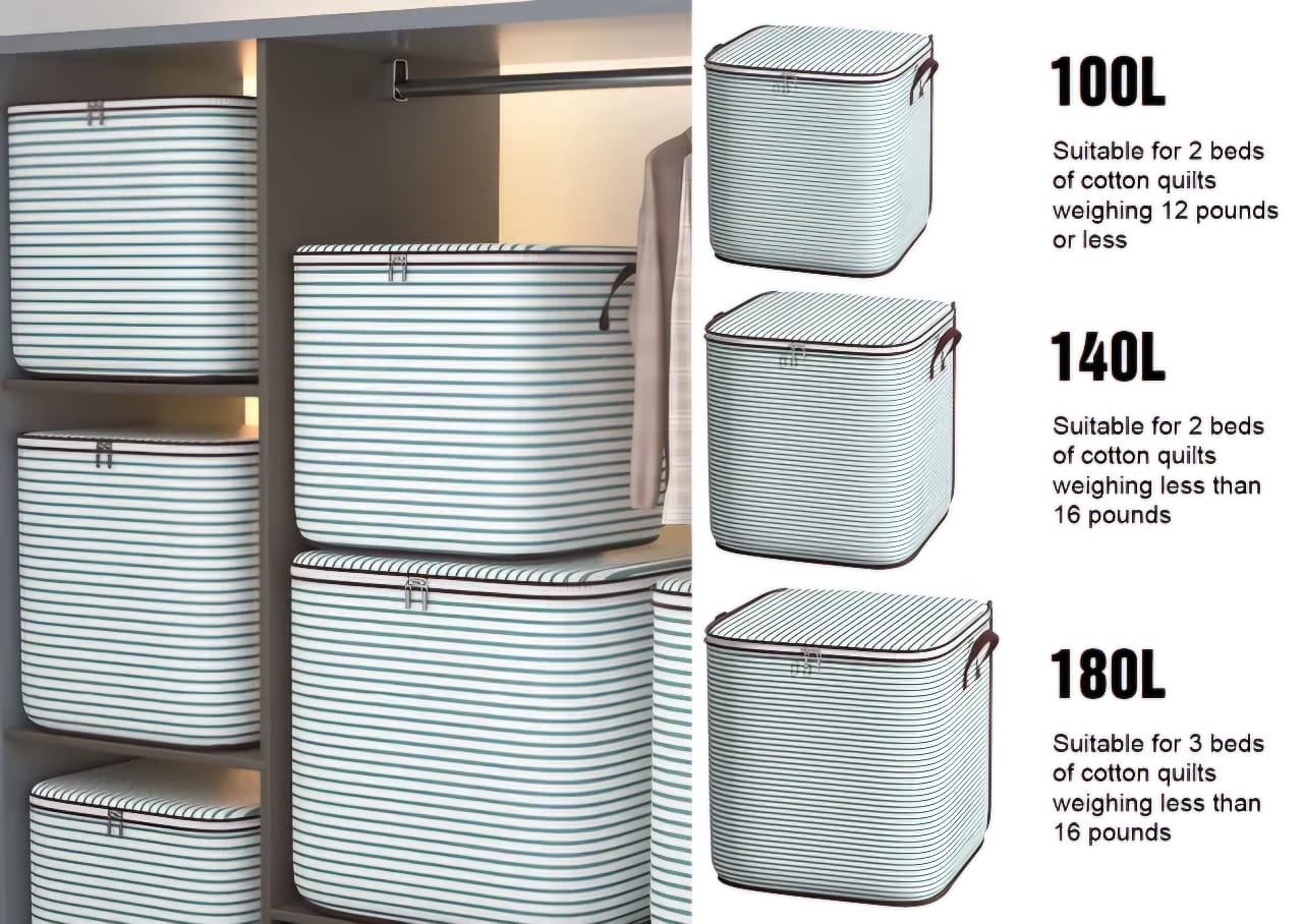 Striped Quilt Duvet/Closet Organizer/Luggage Storage Bags